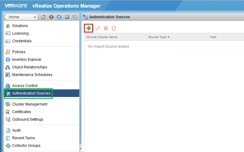 Click on Authentication Sources and click on green plus (+) icon under Authentication Sources.