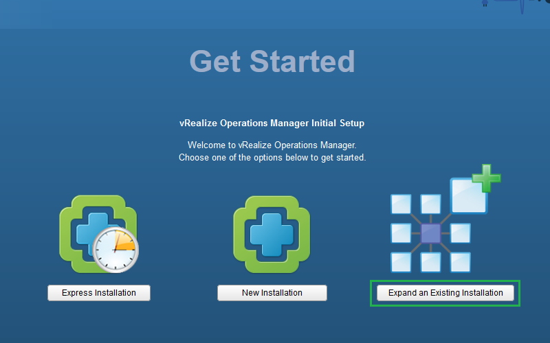 In the getting started page, Select Expand an Existing Installation option.